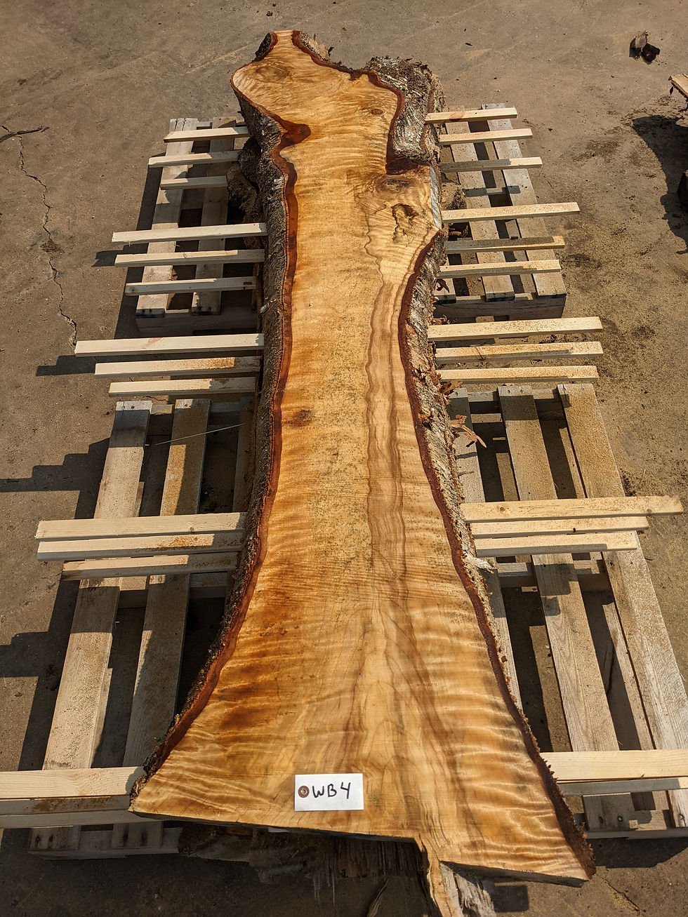 Hollow Hickory Hardwoods inventory is supplied by a local tree service company. These slabs that you see listed come from their customers front or back yards, places that grow unique trees, which translates into the unique grains and live edge slabs you see. After a tree is taken down by the tree service company, the trunk is taken to a sawmill where it is cut into slabs, revealing the life story and inner beauty of the tree. The slabs are hauled from the mill to storage where they stacked on pallets and spaced apart with lathe between the layers to allow for air flow, proper and uniform drying. The slabs are left air drying in storage till they dry as they can become, which is around %8-%13 moisture content. All wood is then kiln dried to minimize future movement.